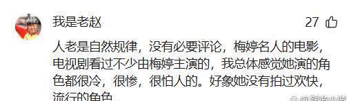 大家盯着她脸上的每一道纹路、每一处松弛感不放,仿佛女星老了就是原罪,完全忘了明星也是普通人,逃不过生老病死的自然法则。就在这场针对梅婷外貌的口水战愈演愈烈时,一条网友热评脱颖而出,直接戳中了整件事的核心,也让不少跟风吐槽的人瞬间沉默。人老是自然规律,没有必要评论,梅婷的电影电视剧看过不少,总体感觉她演的角色都很冷,很惨,很怕人的,好像她没有拍过欢快的。